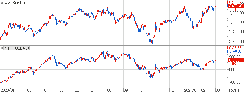 이 부분에 관해서는 주식시장에 양쪽 모두 공존하는 형태가 이어지리라 예상합니다. 다만, 2020년대 이후 특히 작년 2023년처럼 극단적으로 일방적인 성장주 일색의 시장은 아닐 것이란 점입니다. 일정 부분 증시 밸류업 기대 속에 저평가 가치투자로도 투자자들의 자금이 넘어올 가능성이 커졌습니다.