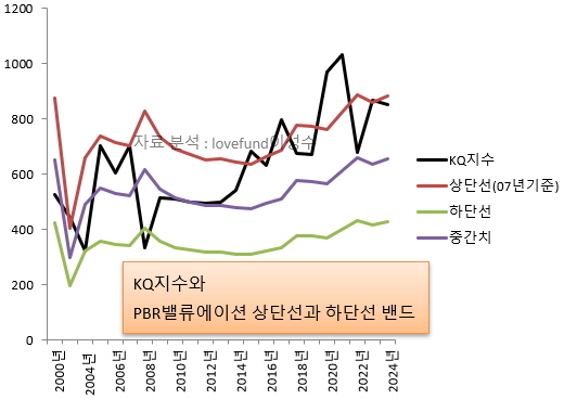 [ 코스닥 시장의 PBR 밴드 추이. 자료 분석 : lovefund이성수 / 원자료 : KRX ]