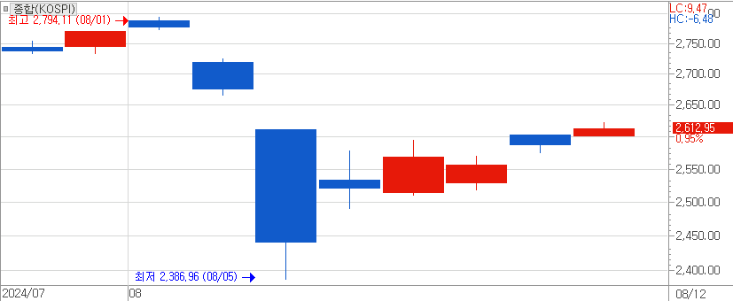 [ 코스피 지수 추이, 지난주 블랙먼데이는 이후 반등 속에 저절로 묻혔다 ]