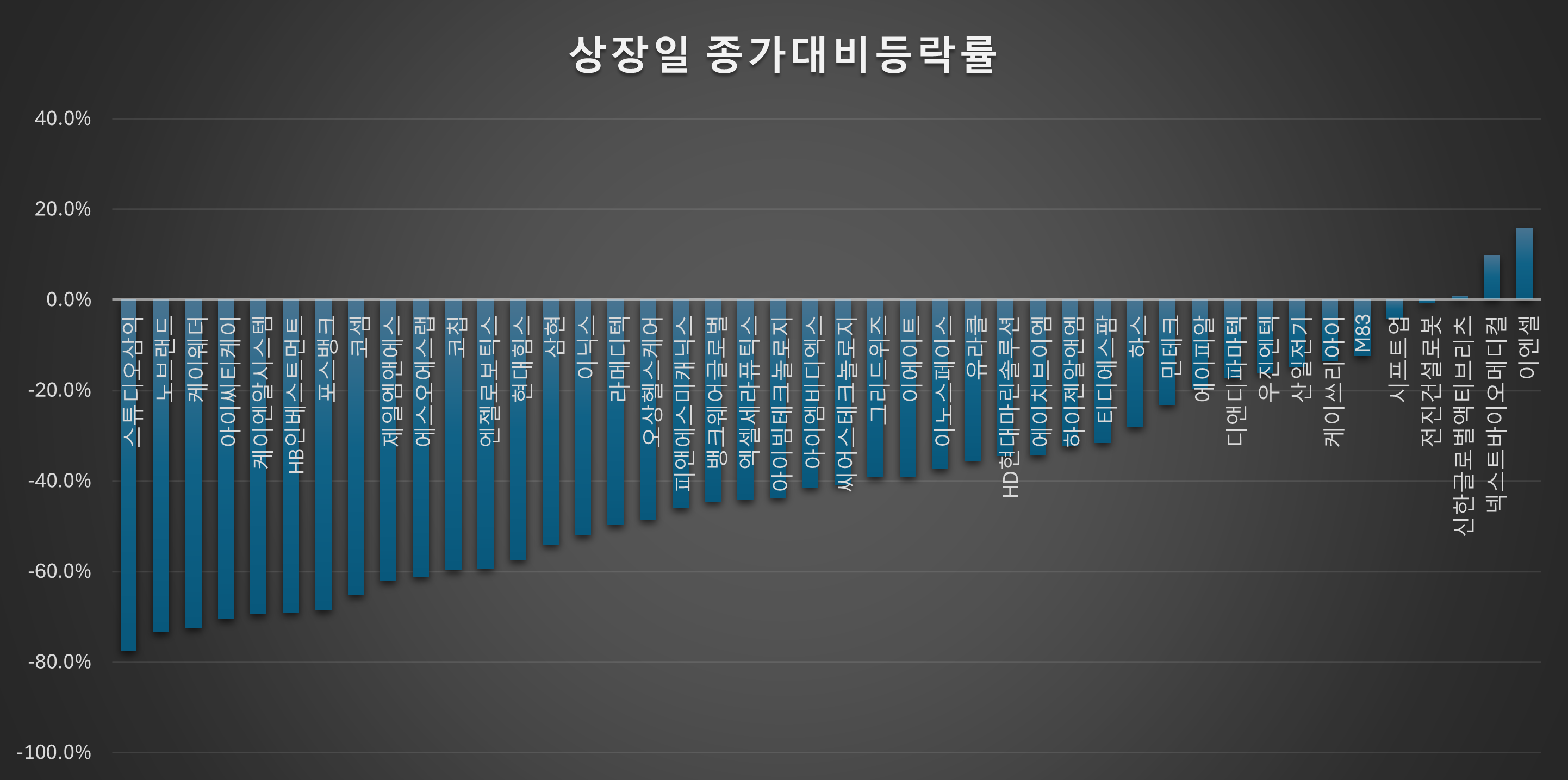 실제 투자자들이 공모가로 받는 주식 수는 극히 적단 점을 고려한다면, 실제 개인투자자들이 신규 상장주식을 매수하게 되는 것은 상장 이후일 것입니다. 결국 신규상장일 종가 대비 등락률이 개인투자자들이 체감하는 등락률일 수밖에 없는 것이지요.