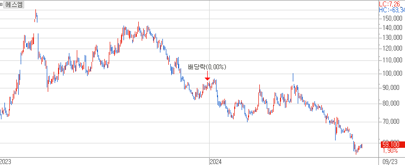 [ 작년 2023년 경영권분쟁이 있었던 에스엠의 주가 흐름 ]