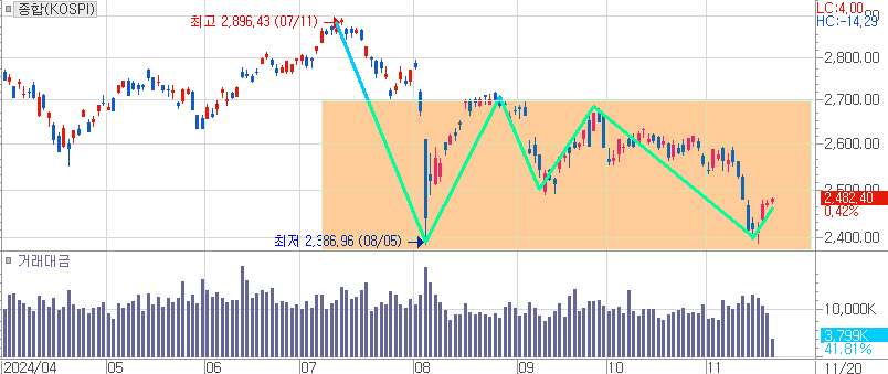 한국 주식시장은 지난여름 이후 하락장 속에 딥밸류에 들어와 있습니다. 예전 같다면 정말 싼 좋은 기회이기에 급락을 이용한 반발 매수가 강하게 들어오면서 V자 또는 제법 큰 W자 반등을 만들었을 것입니다.
