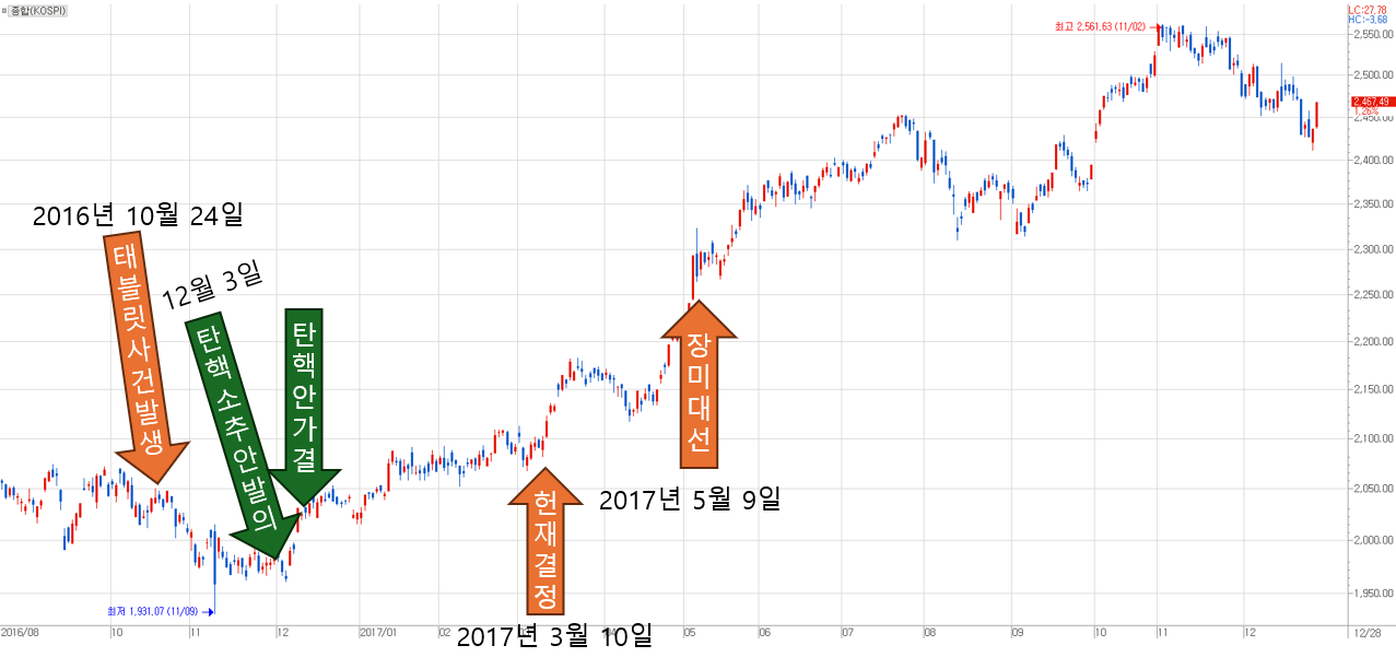[ 2016년 박근혜 탄핵 사건 전후 주식시장 흐름 ]