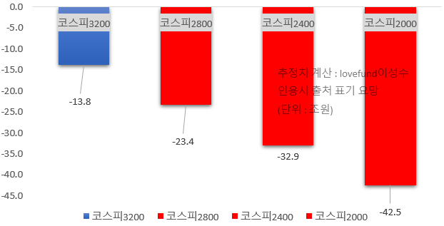 [ 코스피 지수대별 국민연금의 국내 주식 비중 목표치 대비 부족분 추정치 ]