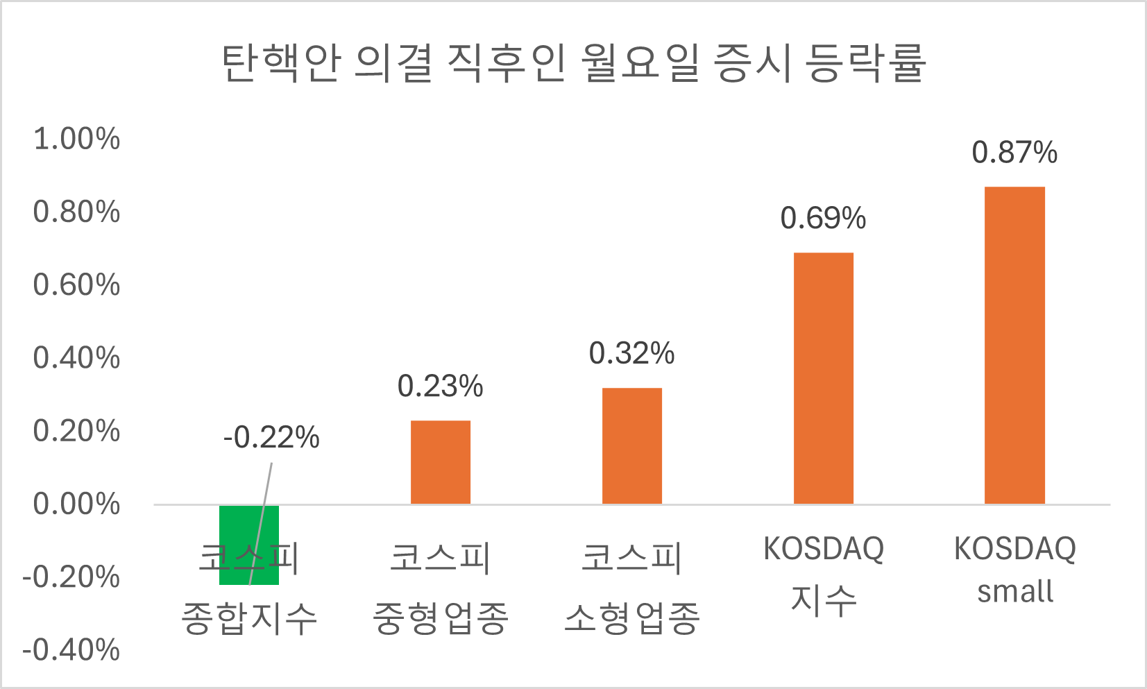 [ 탄핵안 국회 의결 직후인 월요일 증시 등락률 ]