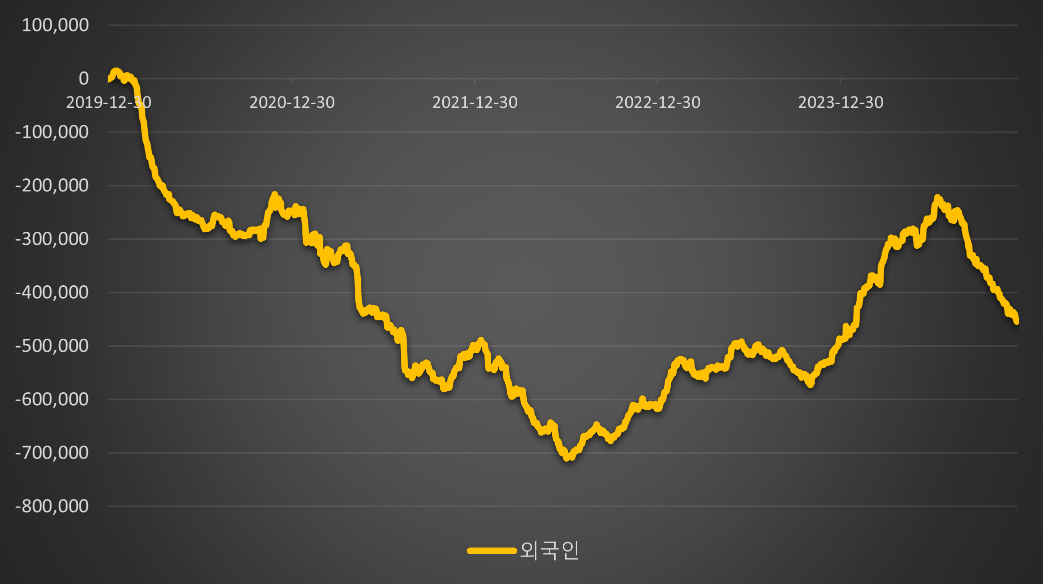 ■ 외국인의 2년간 순매수하였던 방향이 완전히 돌려져 있는 현재 상황