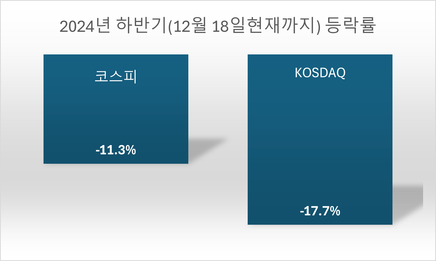 [ 코스피와 코스닥 시장의 12월 18일 현재까지 2024년 하반기 등락률 ]