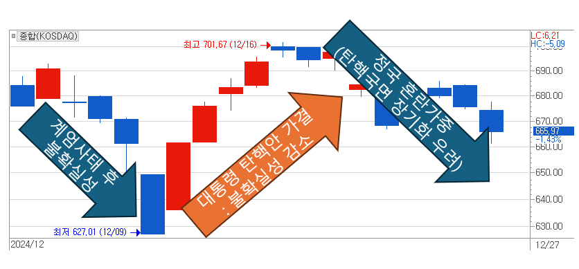 [ 코스닥 지수에 강하게 새겨진 계엄 사태 후 불확실성 증감에 따른 증시 흐름 ]
