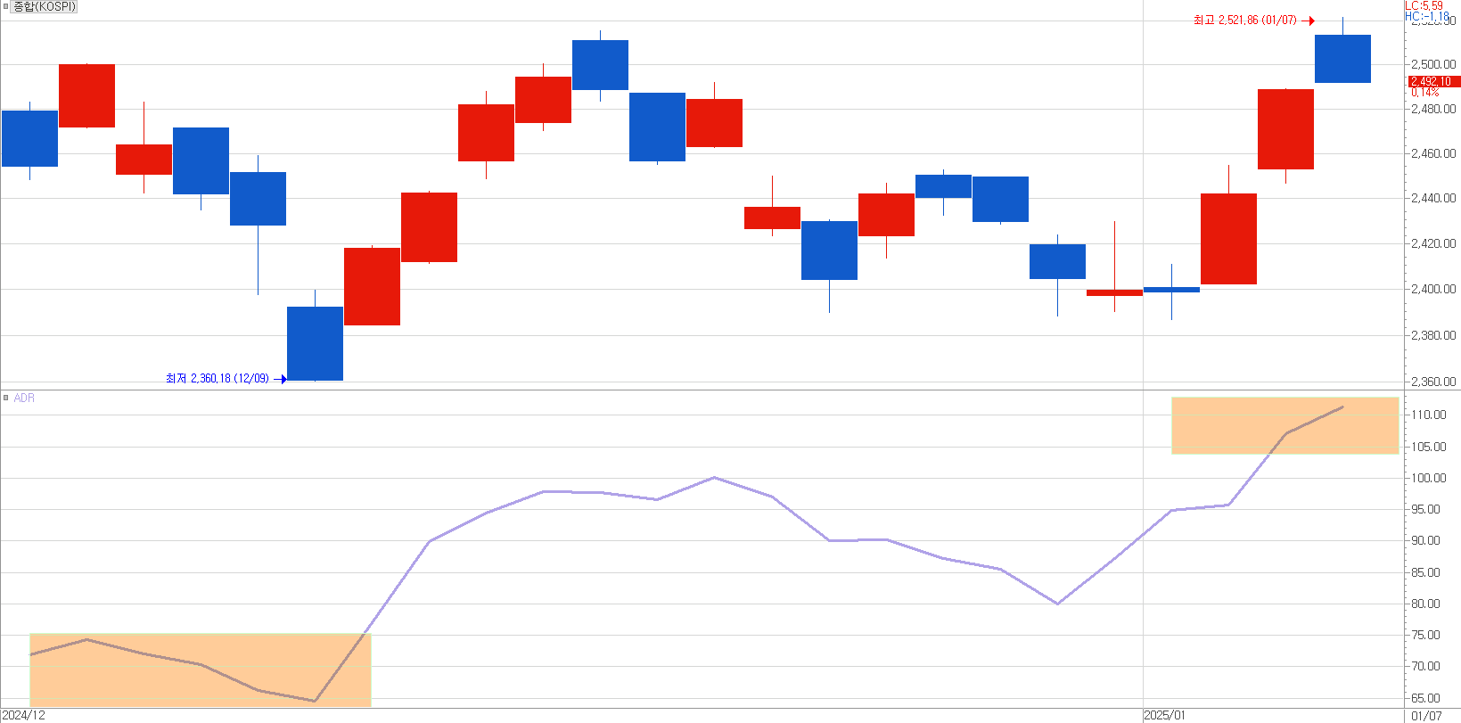 [ 12월 이후 코스피 지수와 ADR 지표 ]