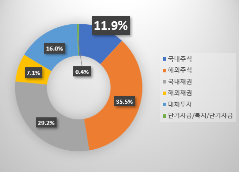 [ 작년 11월 말 기준 국민연금 내 국내 주식 비중은 11.9%. 자료 참조 : 기금운용본부 ]