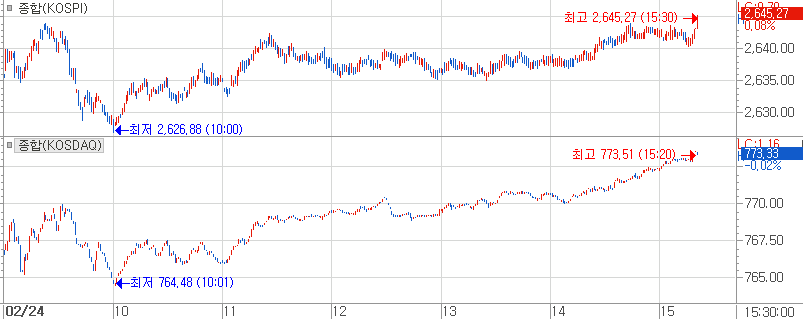 [ 월요일 코스피 지수와 코스닥 지수는 뒷심이 강하게 나타났다. ]