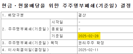 작년 2024년 봄, 상당수의 상장사는 주주총회에서 배당기준일에 관한 정관을 변경하였습니다. 예전에는 권리 주주 확정 기준일 (보통 회계기준월 말일)이었지만, ‘이사회에서 정하는 날’로 바꾼 것이지요.