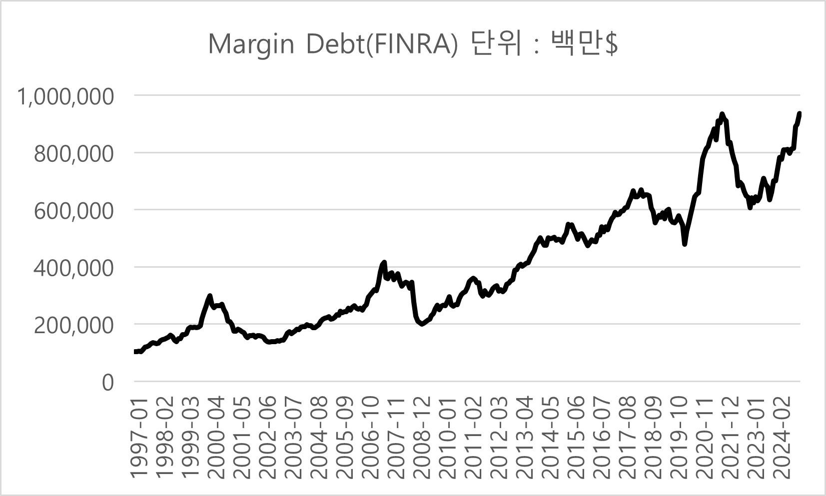[ Margin Debt 추이. 자료 참조 : FINRA ]
