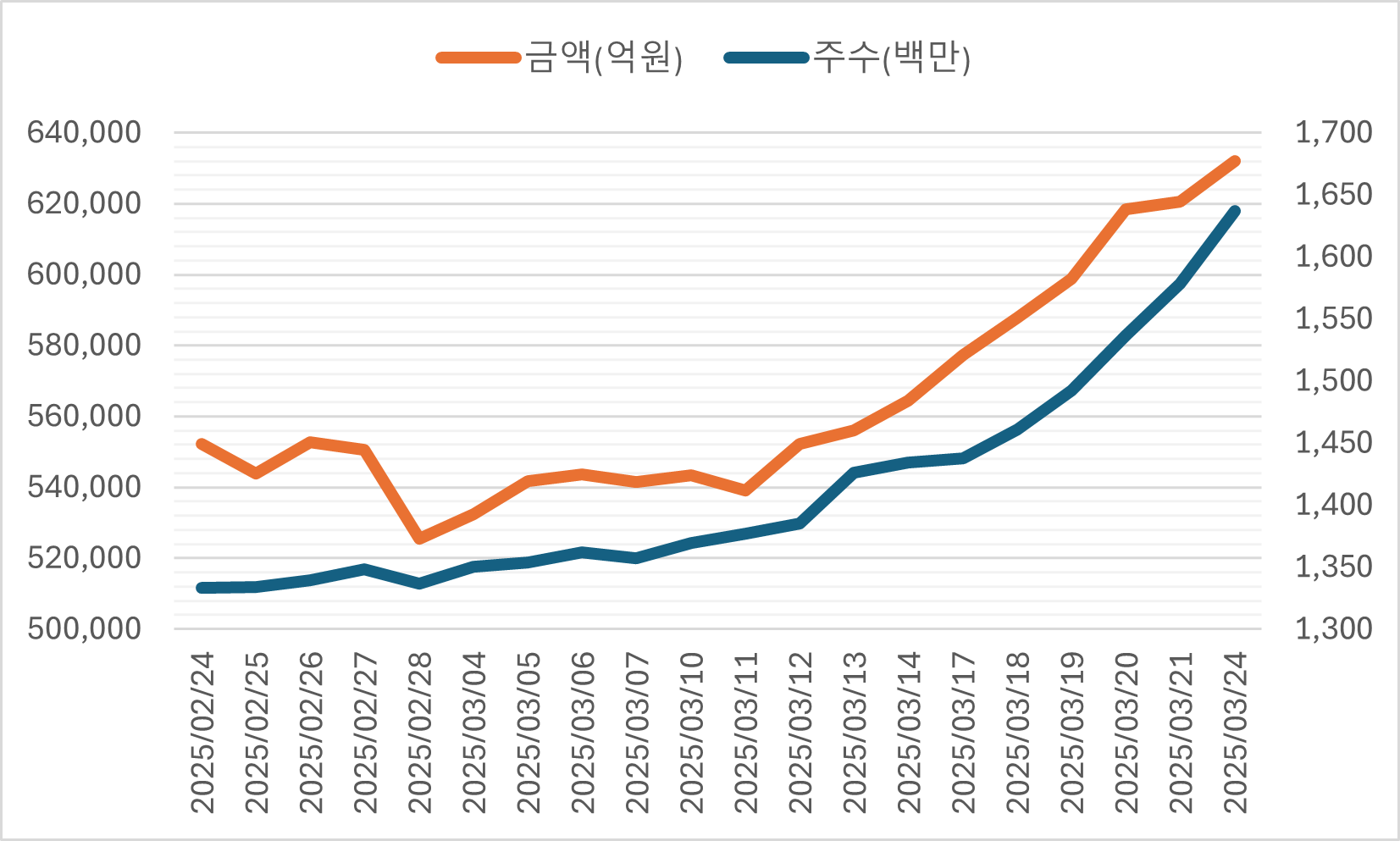 다음 주에는 공매도가 전면 재개됩니다. 이에 따라 최근 대차 잔고가 점진적으로 증가하는 흐름이 관찰되기도 합니다. 2월 말 13억 3천여만 주, 52조 5천6백억 원이었던 대차잔고는 최근 3월 24일에는 16억 3천여만 주, 63조 1,911억 원으로 10조 원 이상 급증하였습니다. 마치 공매도를 재개하기에 앞서 준비하는 듯한 모습처럼 느껴질 정도로 크게 증가하였습니다.
