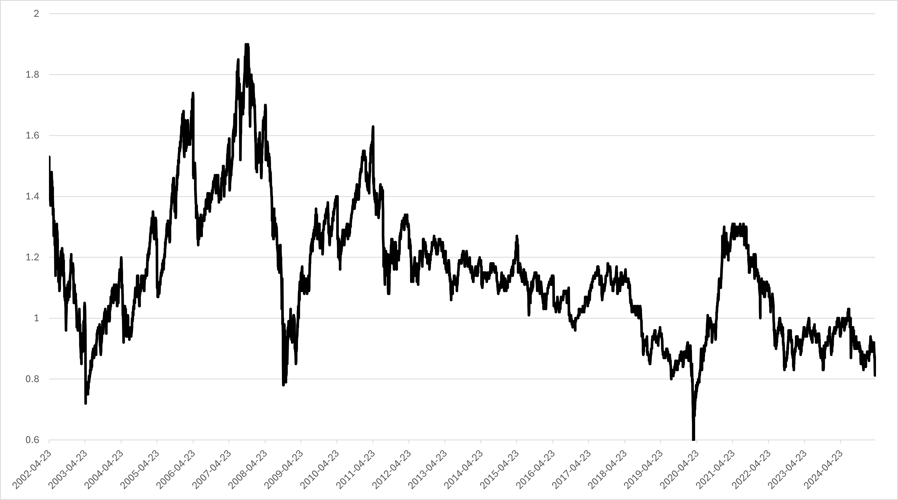 [ 한국 코스피 시장의 PBR 추이. 자료 참조 : KRX ]