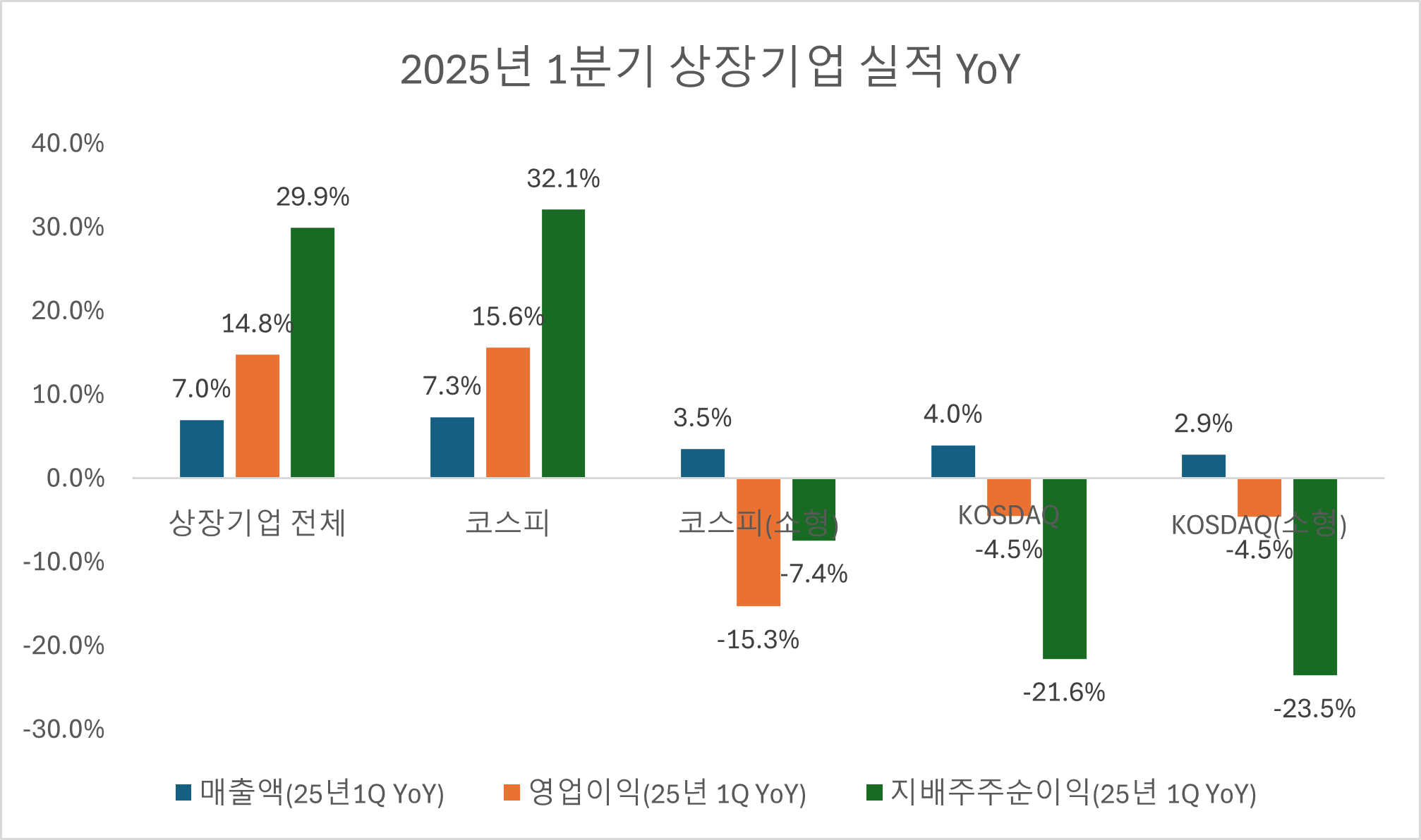 ■ 2025년 1분기 상장기업의 전년 비 매출액 7% 증가! 그런데!