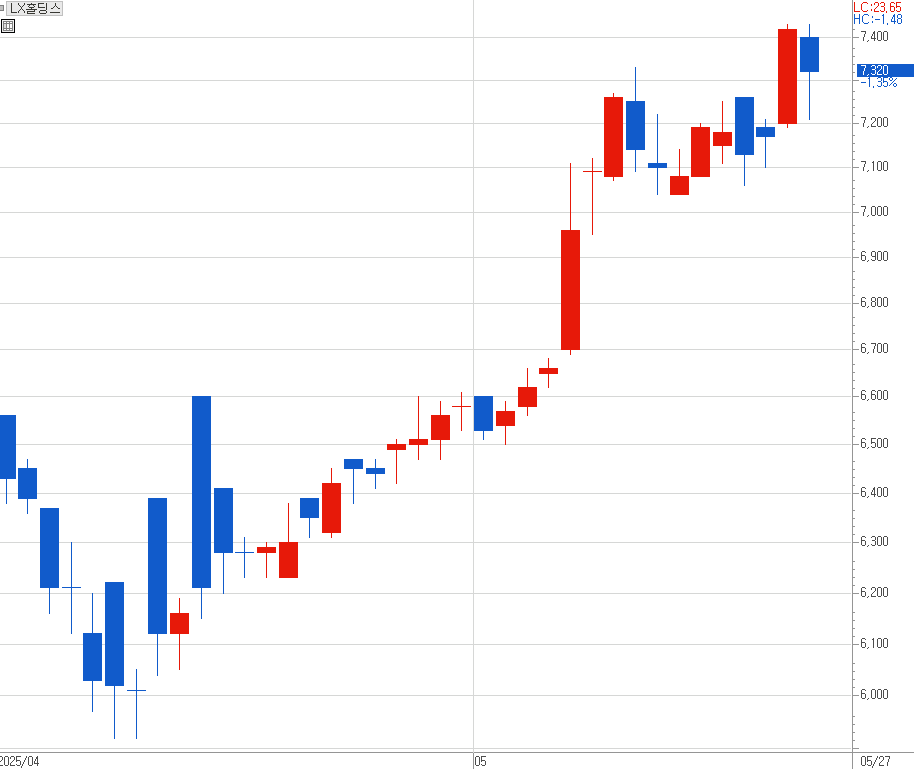 [ 5월 들어 주가 강세가 두드러지는 지주사 주가 사례. 자료 : LX홀딩스 주가 일봉 ]