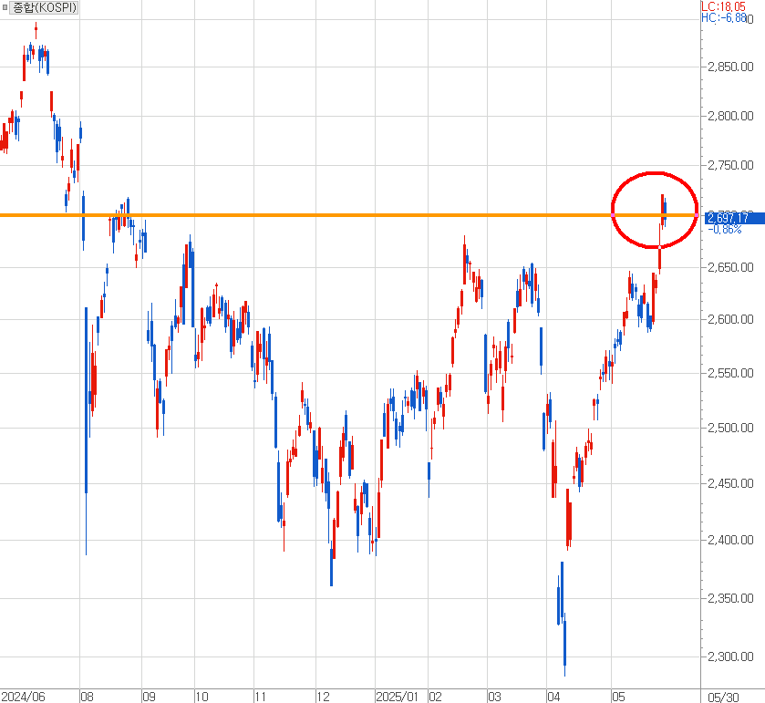 [ 5월 말 주식시장은 연중 최고치를 넘어 10개월 만에 2,700p를 넘어섰다 ]