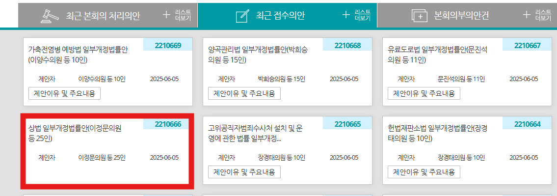 [ 국회 의안정보 시스템에 올라온 상법 개정안 6월 5일 자 ]