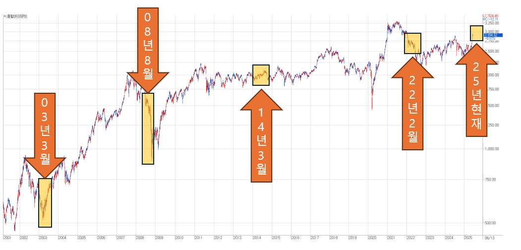 다만, 시간이 지나면서 서서히 불안감은 금융시장에서 사라지고 시장은 안정되어 가게 됩니다. 그리고 다시 자기 갈 길을 걸어가게 되지요. 자기 갈 길을 갈 때, 글로벌 금융시장 상황이 변수가 될 뿐입니다. (ex 08년 금융위기, 2022년 연준의 연속 금리 인상 등)