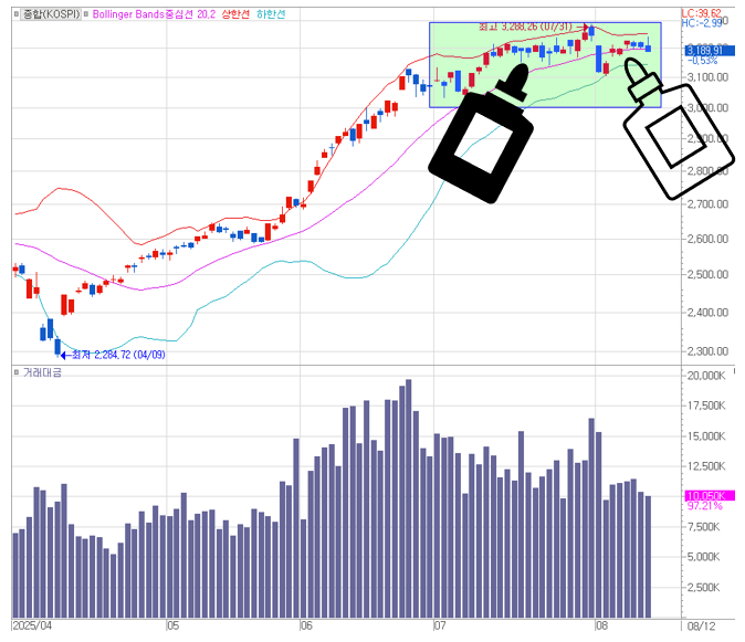 요즘 주식시장은 마치 본드로 붙여놓은 듯 제자리걸음만 반복하고 있습니다. 앞으로 나가는 것도 아니고 뒤로 물러서는 것도 아닌 코스피 3,200p에서의 횡보장이 지속되고 있습니다. 이는 코스피 지수뿐만 아니라 시장 전반에서 나타나는 현상입니다. 접착제로 붙여놓은 듯한 장세를 필자는 재미 삼아 “제임스 뽄드”장세라 부르곤 합니다.