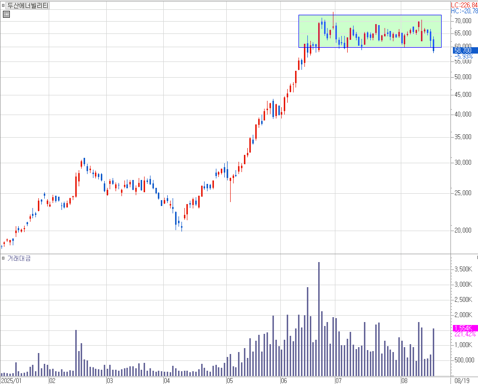 워낙 강한 조방원 테마였다보니, 단숨에 그 기세가 꺾이지는 않을 것입니다. 다만, 위 두산에너빌리티의 주가 차트에서 보시는 것처럼 다른 조방원 테마주들이 원형 천정형과 유사한 패턴을 만들고 있다는 점은 조금은 불안해 보입니다.