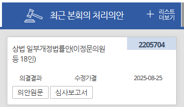 [ 국회 의안정보 시스템에 올라와 있는 2차 상법 개정안 결과 ]