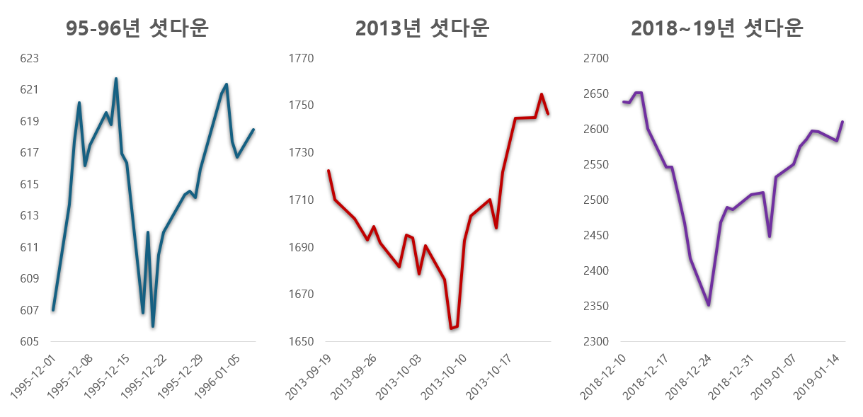 ■ 굵직한 3번의 셧다운 시기 : 주식시장은 V패턴